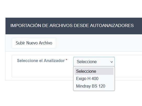 La carga de los Resultados puede hacerse por teclado, o por un proceso automático desde la exportación que realiza el Equipo Autoanalizador